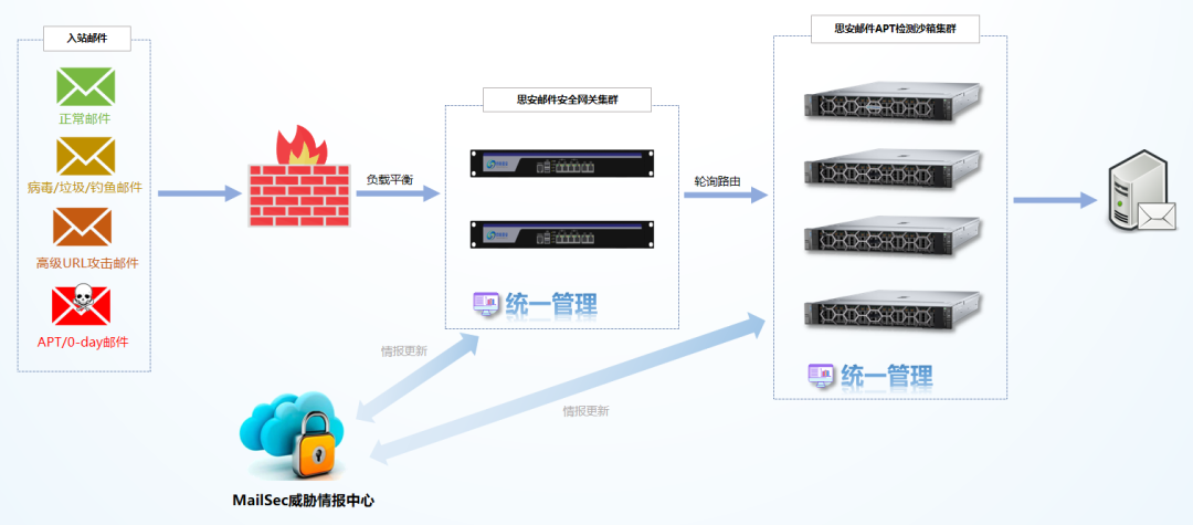 当企业员工数量达到数万甚至数十万,日均邮件处理量突破几十万级甚至百万级,单一的设备或简单的双机热备已无法满足业务需求。高并发带来的性能瓶颈、海量数据存储的压力、以及对7x24小时业务连续性的极致追求,都在考验着邮件安全厂商的架构设计能力。